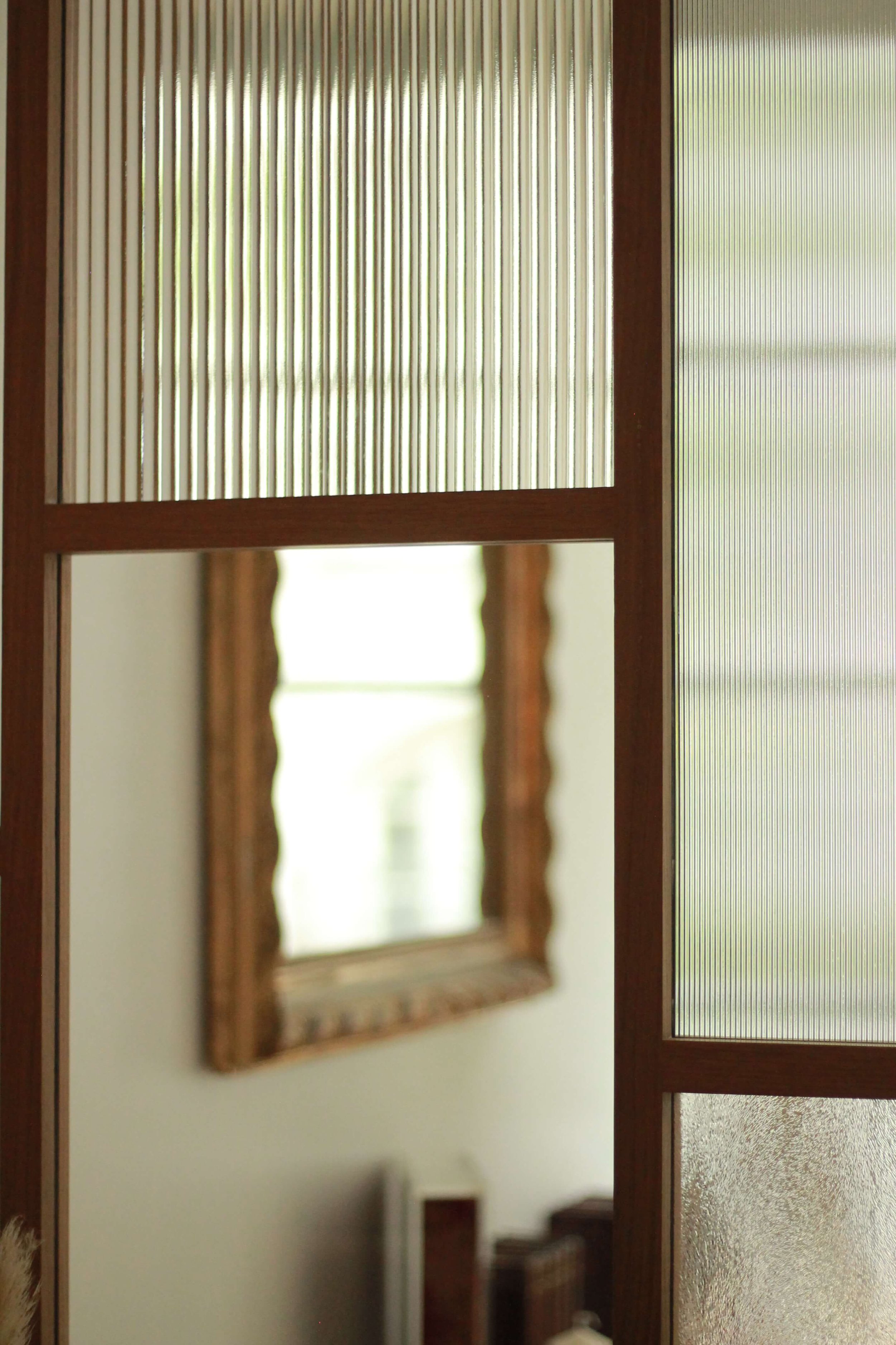 Conception et réalisation de deux verrières en chêne et une alternance de verres texturés à transparents.